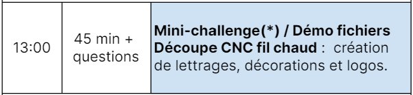 (*) Dossier pour création lettrage, déco, logo en CNC fil chaud pour le Mini-Challenge de Samedi 1/6 : pas de dossier, sujet libre (exemples : logo NIKE, lettrage, logo Channel, décoration de Noël, graphe...)