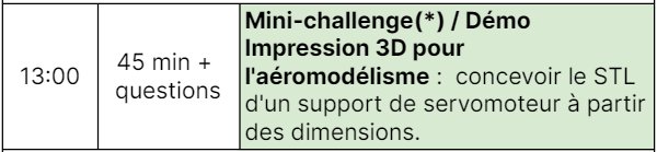 (*) Dossier d'un support de servo pour le Mini-Challenge impression 3D de Dimanche 2/6 : À télécharger ici